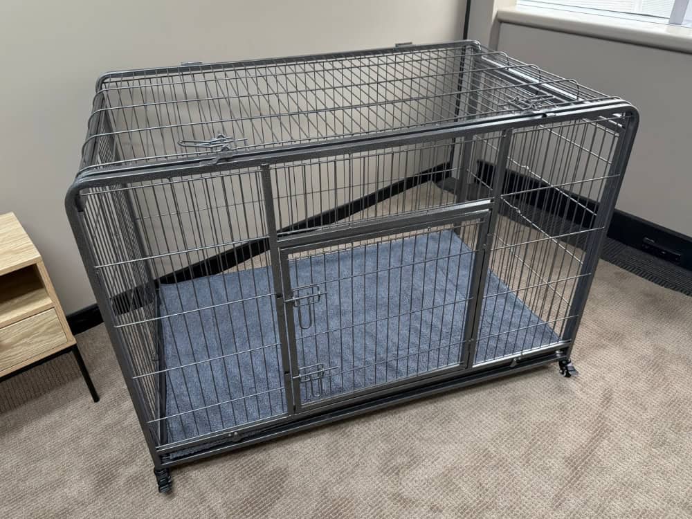 Made from durable steel, it provides peace of mind for pet owners who want to ensure their cats are protected while they sleep. The wheels make it easy to move the crate to different rooms, while the roof opening allows convenient access for feeding or cleaning.