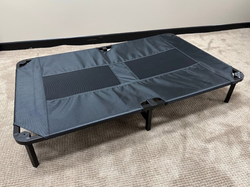 - Trampoline XL Dog Bed (+$51): Raised on legs, no stuffing. Grey: 118cm x 73cm x 19cm